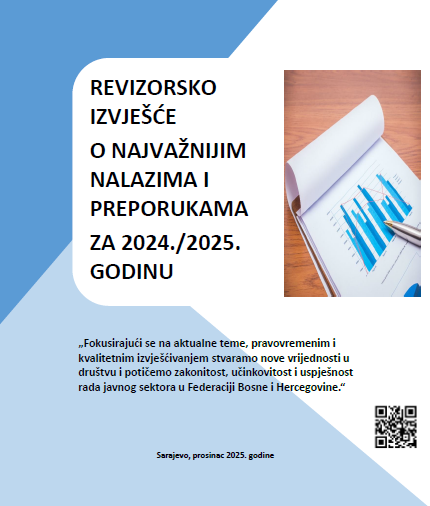 Ured je, shodno članu 16. stav 6) Zakona o reviziji institucija u Federaciji BiH, sačinio Revizorsko izvješće o najvažnijim nalazima i preporukama za 2024/2025. godinu, koji sadrži najvažnije nalaze i preporuke iz obavljenih financijskih i revizija učinka, te Izvješće o financijskoj reviziji Izvješća o izvršenju Proračuna Federacije BiH za 2024. godinu. Izvješće možete preuzeti ovdje.